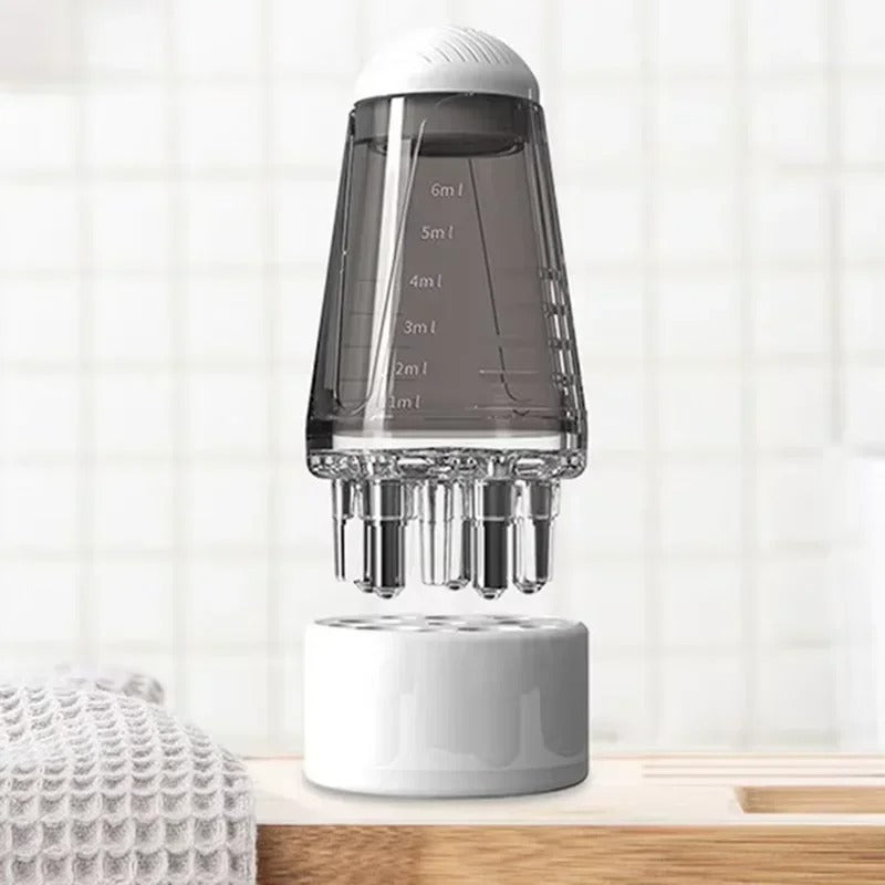 ✓ Targeted application – oil flows only where you guide it, with built-in scale for precise dosage